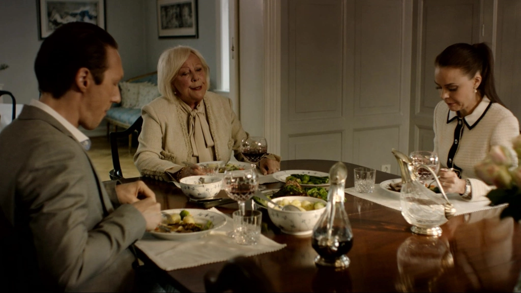 Что касается сохранения моральных ценностей сериала, то у Хермины есть помощницы, например, Селин (Ине Марие Вильман, «Реприза») — жена Уильяма. После развода она оказывается на распутье: пытается найти почву под ногами, то вступая в токсичные интрижки, то пытаясь преобразить себя внешне. И на контрасте мы можем поймать моменты, когда она берет паузу, дает себе время передохнуть. Но ее молчаливое присутствие — это самая честная реакция на всё происходящее.