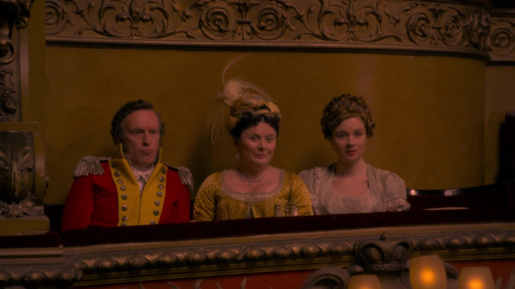 Джонни Флинн (майор Уильям Доббин), недавно снявшийся в нетфликсовском мини‑сериале «Рипли», известен не только как актер, но и как музыкант. Он наделяет своего персонажа эмоциональным интеллектом. Кажущийся бесхарактерным «рыцарем в тени» Доббин обретает сложные черты — его доброта не безропотна, а любовь не идеализирована.