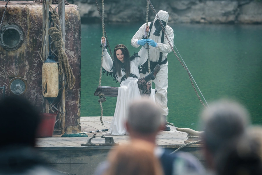 Несмотря на то, что действие погружает во множество таинственных миров — с опасными рейвами, змеиными клубками, подростковыми тайнами, чужими снами и полицейским процедуралом, самой захватывающей и будоражащей остается линия заложников в загородном доме. В какой‑то момент создается впечатление, что это и не сериал вовсе, а мастерски срежиссированный иммерсивный спектакль, на сцене которого обескураживающий дуэт психопатов, представившихся полицейскими Хани (Саша Дхаван) и Молиной (Иван Реон), и очень‑очень сомнительное семейное трио: мать Матильда (Джульет Стивенсон), отец Оливер (Оуэн Тил) и взрослая дочь Люсия (Аннес Элви). Вся пятерка весьма талантливо разыгрывает пьесу о жестокости и безумии.